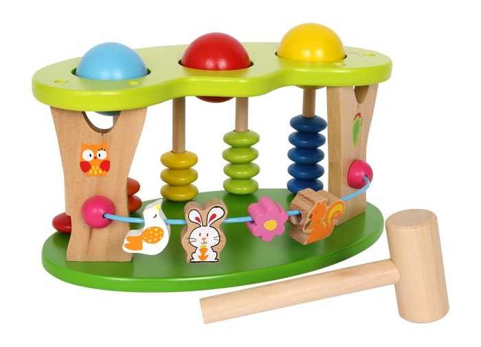 S touto nádherně zpracovanou dřevěnou motorickou loukou se dají hrát tři hry: koule se zaklepávají skrz listovou střechu, zvířata se posouvají od stromu ke stromu a kroužky se počítají.Německá firma Legler zaměřená na výrobu kvalitních dřevěných hraček od roku 1996. Všechny dřevěné hračky značky...