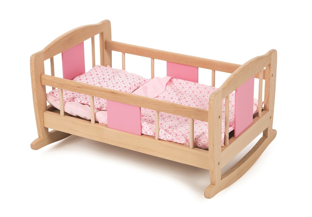 Tidlo Dřevěná kolébka růžováUložte panenku ke spaní stylově. Dřevěná kolébka má zaoblené hrany a rohy pro extra bezpečnost, najdete v ní polštář a přikrývku s bílo růžovým květovaným povlečením. Vhodná pro většinu standardně velkých panenek – do 50 cm. Skvělý způsob jak děti inspirovat k hraní na...