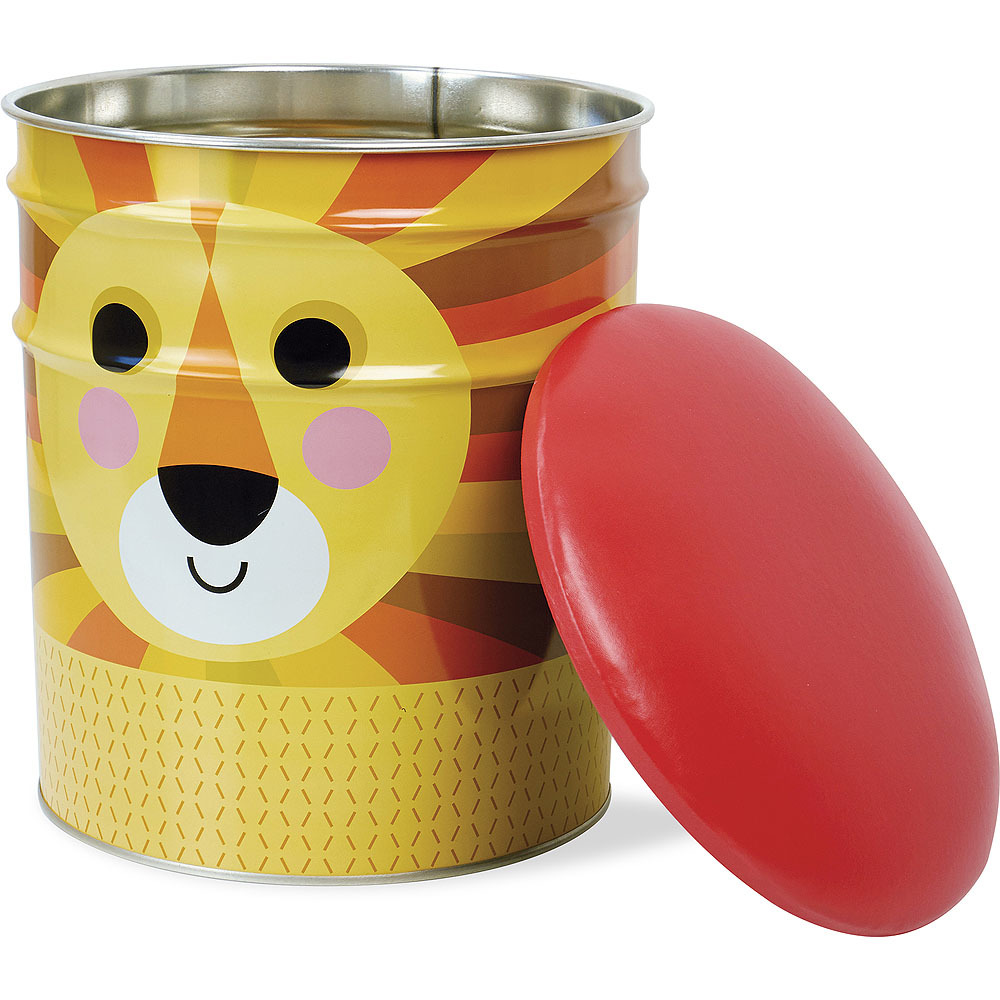 Geniální, dekorativní kus, který je zároveň židlí a úložným prostorem. Taburet má kovové tělo s odjímatelným koženkovým sedákem. Vaše děti si tak mohou uklidit a schovat své hračky dovnitř a poté usadit svou návštěvu na tohoto veselého lva. Ilustrováno Ingelou P. Arrhenius. Hračky Vilac mají...