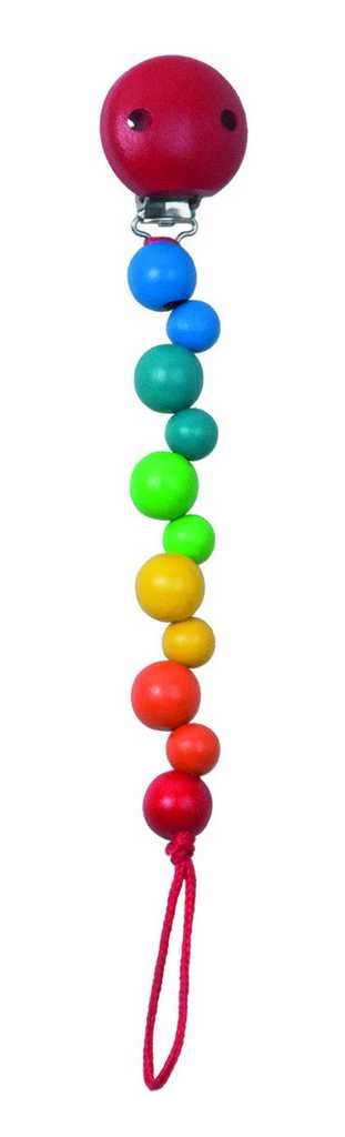 Duhový závěs na dudlík s dřevěnými korálky. Upevnění na oděv klipsem neobsahujícím nikl. Výrobek je zdravotně nezávadný. Tyto české dřevěné hračky jsou vyráběny z kvalitního dřeva, které se těží v horských oblastech střední Evropy. Pro barvení se používají pouze kvalitní, certifikované a...