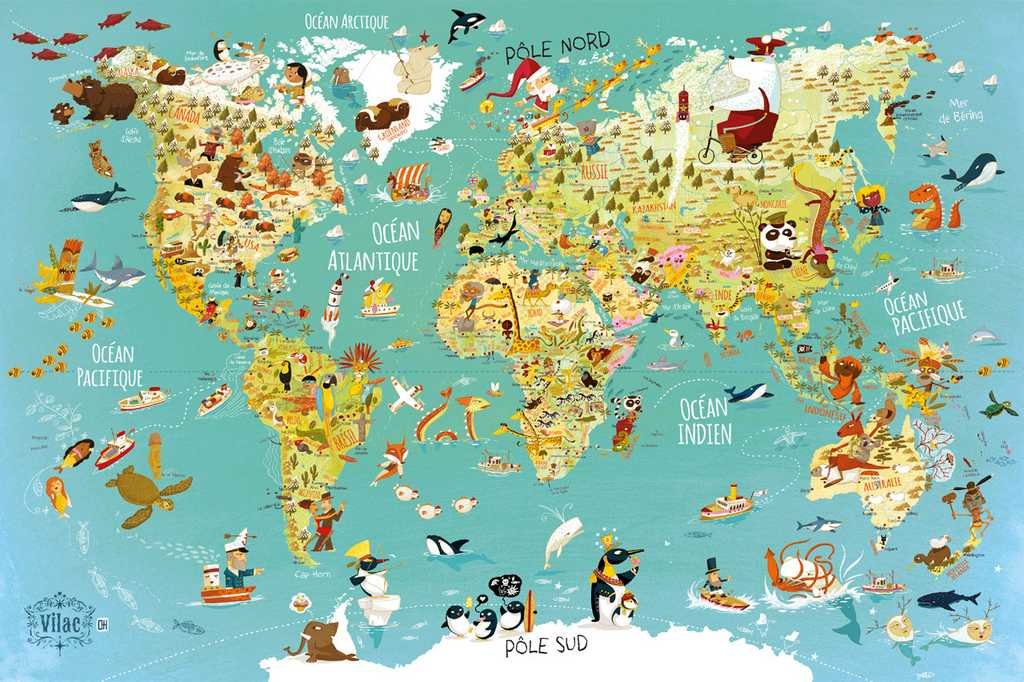 Puzzle s 500 dílky z tvrdé lepenky. Po poskládání puzzle odhalí mapu světa s francouzskými texty. Mapa skrývá mnoho deatilů a roztomilou ilustraci. Děti se naučí jména zemí, hlavních měst, řek, moří i oceánů. Dále také něco z fauny, flory a tradic každé ze zemí. Hračky Vilac mají značku...