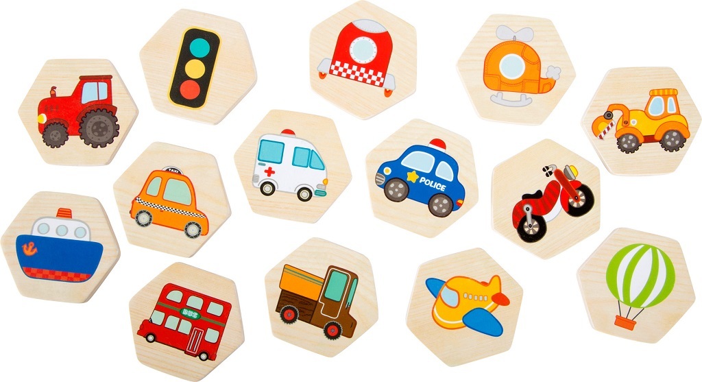 Small Foot Dřevěné pexeso dopravaPexeso s motivem dopravy obsahuje 28 kusů ve tvaru plástve. Tento tvar je lehce uchopitelný i pro malé děti. Pexeso rozvíjí jejich paměť a jemnou motoriku.Německá firma Legler zaměřená na výrobu kvalitních dřevěných hraček od roku 1996. Všechny dřevěné hračky...
