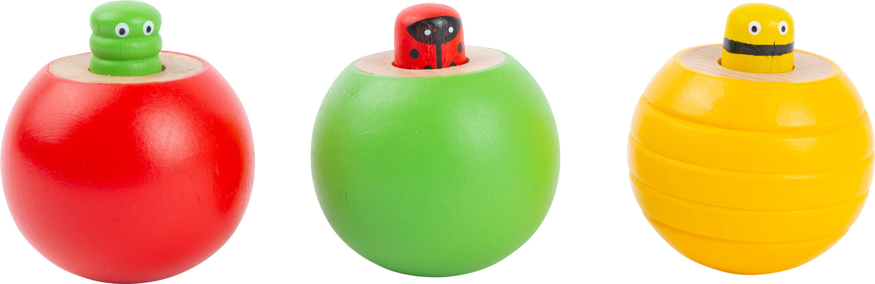 Small Foot Hmyzí káča se zvukem 1 ksMohly by tyto hračky ve tvaru ovoce s vykukujícím hmyzem fungovat jako káča? Barevné míčky z pevného dřeva, z kterých vykukuje včelka, housenka a beruška vydávají při zatlačení vtipný zvuk. Když je zamáčknete a poté opět vypustíte, hračka vyskočí, což jistě...