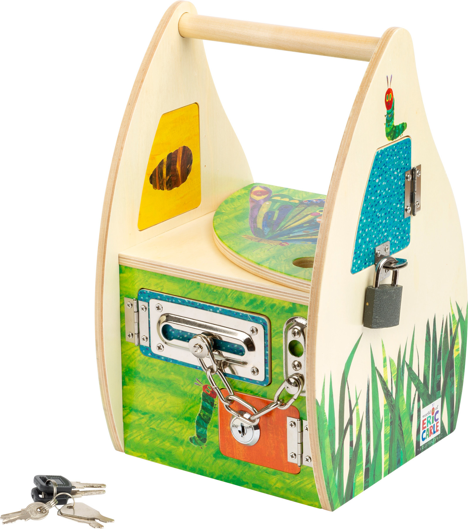Zamkni dům či truhlu s hladovou housenkou! Tento tajemný dům z masivu je opatřen sadou zámků a petlic, které je třeba otevřít. Jemné motorické dovednosti jsou trénovány otevíráním a zavíráním různých mechanismů zámků. Dům lze také použít jako truhlu s přihrádkami a přepážkou! Díky praktické...