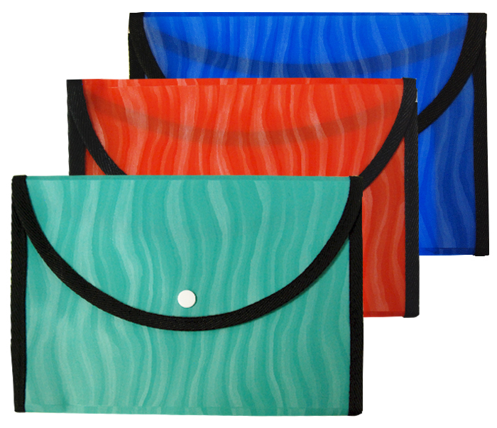 PP materiál- vhodné pro nošení a úschovu dokumentů- tloušťka 350mic- textilní okraj- zapínání na druk- rozměry 24 x 16,9 x 5cm przeczytaj całość