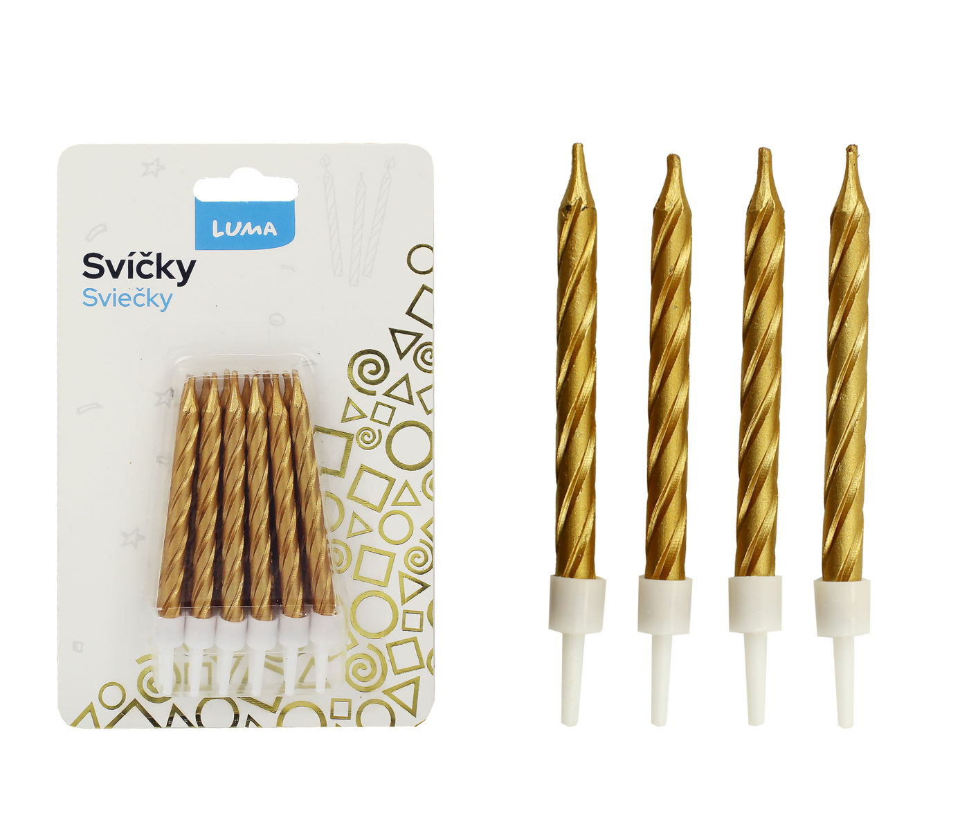 Svíčka 12ks, SPIRÁLA zlatá LUMA