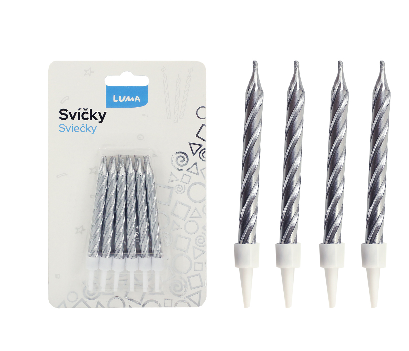 Svíčka 12ks, SPIRÁLA stříbrná LUMA