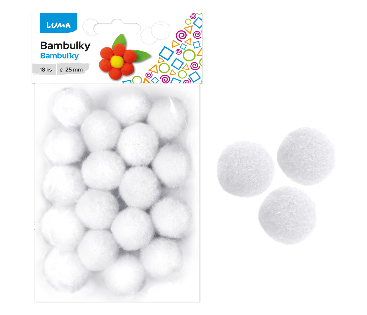 Bambulky bílé, 18ks 25mm LUMA