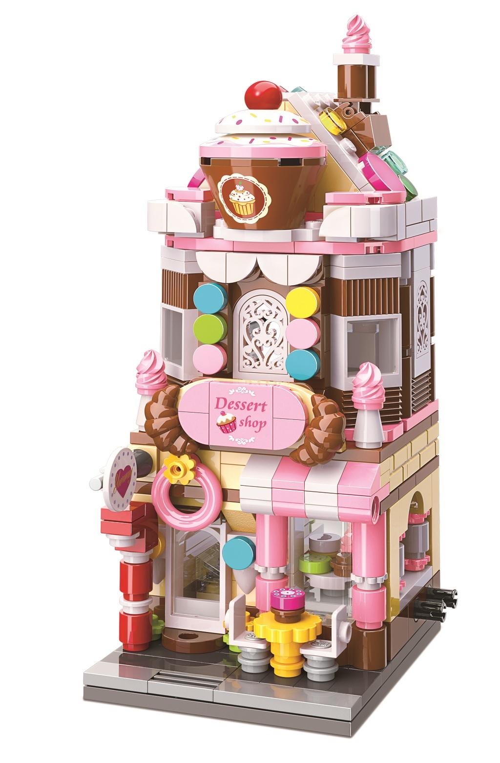 Qman City Corner C0101 Dom Miodowy Słodki Deser Zbuduj z tego zestawu własny sklep z deserami. Opakowanie zawiera 344 elementy zestawu. Zestaw jest kompatybilny z Lego, Sluban i innymi zestawami tego typu. przeczytaj całość