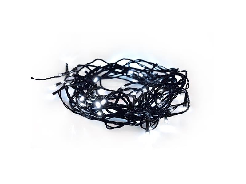 LED venkovní vánoční řetěz, 50LED, 5m, 3m přívod, 8 funkcí, IP44. 3x AA, studená bílá