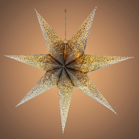 Ta siedmioramienna gwiazda świąteczna jest wykonana z mieszanki papieru i bawełny o przyjemnie strukturalnej powierzchni, co nadaje dekoracji elegancki i naturalny wygląd. Srebrnobiała kolorystyka ładnie uzupełni każdy świąteczny styl, od nowoczesnego po tradycyjny. Dzięki średnicy 60 cm jest wystarczająco efektowna, by przyciągać wzrok na ścianie, w oknie lub na drzwiach.
