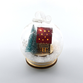 Skleněná ozdoba s dekorem "dům" a umělým sněhem1 LEDBarva světla: teplá bíláMateriál sklo + dřevěná překližkaNapájení 3xLR44 (obsaženo v dodávce)Časovač: 6/18 h przeczytaj całość