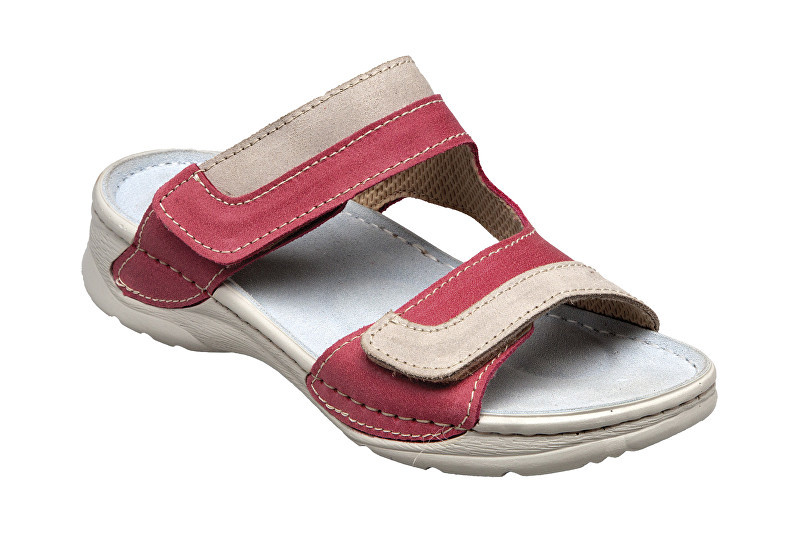 Zdravotní obuv - dámský pantofel,Barva: červená,Podešev: světlá,Stélka: anatomicky tvarovaná,Materiál: kůže,protiskluzová podrážka. przeczytaj całość