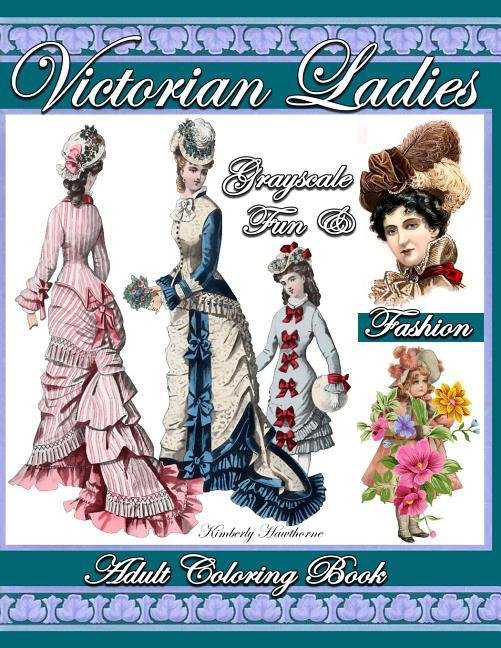 Victorian Ladies Grayscale Fun & Fashion Adult Coloring Book: 39 Coloring Pages of Victorian Fashion, Hats, Hair Styles, Ladies (angielski)