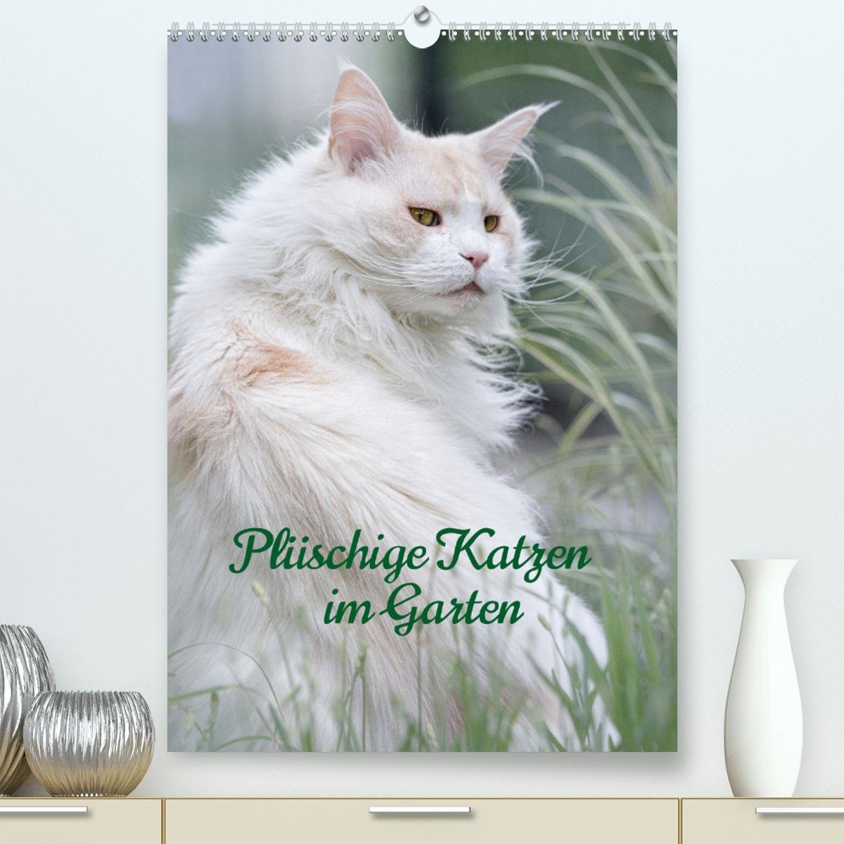 Plüschige Katzen im Garten (Premium, hochwertiger DIN A2 Wandkalender 2023, Kunstdruck in Hochglanz) (niemiecki)