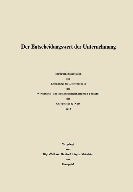 Der Entscheidungswert der Unternehmung (niemiecki)
