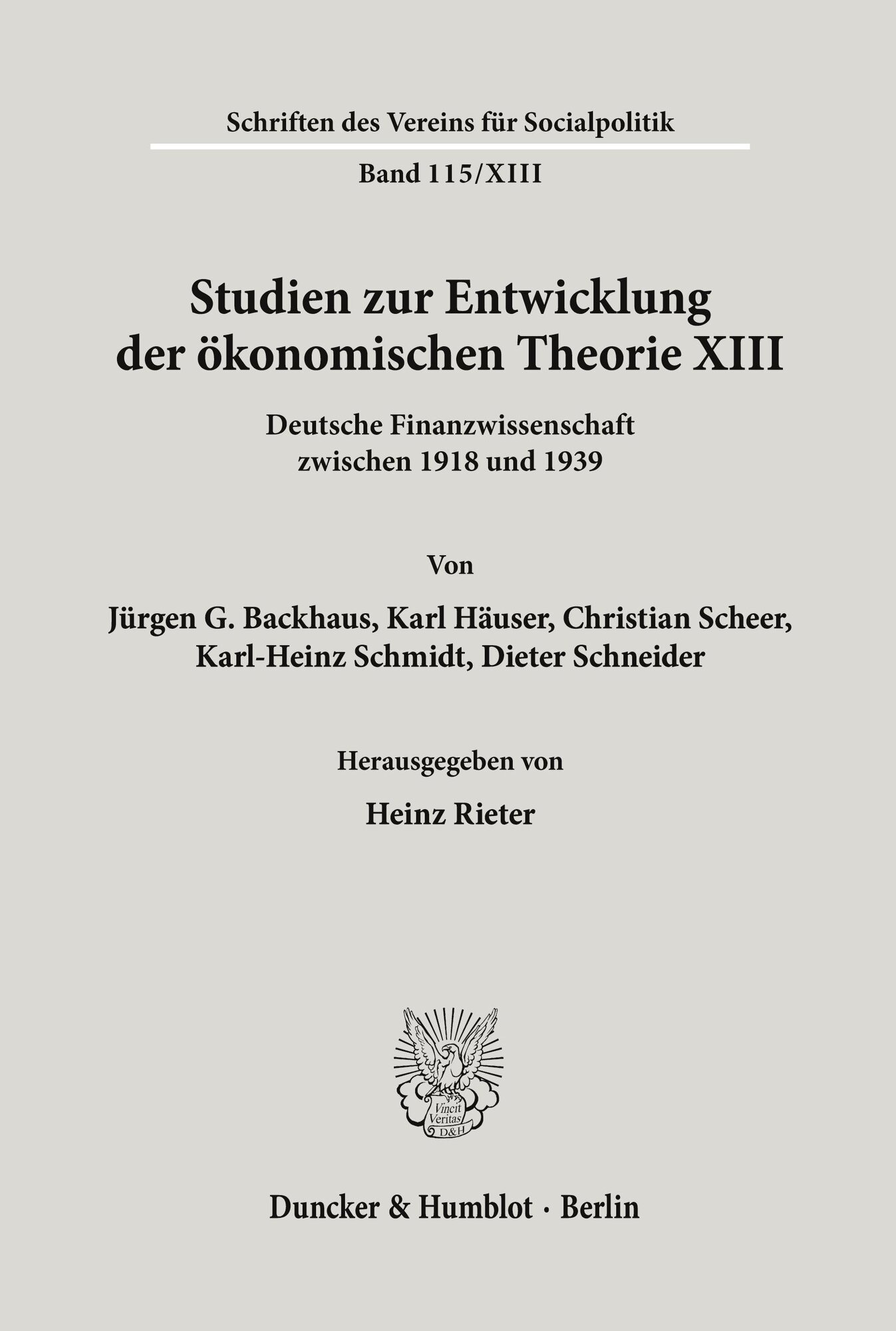 Studien zur Entwicklung der ökonomischen Theorie XIII. (niemiecki)