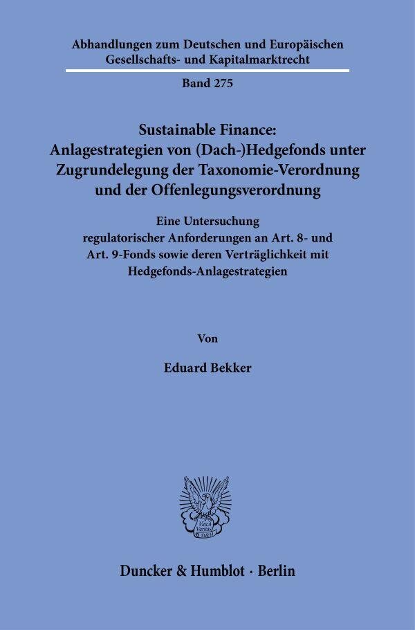 Sustainable Finance: Anlagestrategien von (Dach-)Hedgefonds unter Zugrundelegung der Taxonomie-Verordnung und der Offenlegungsve (niemiecki)