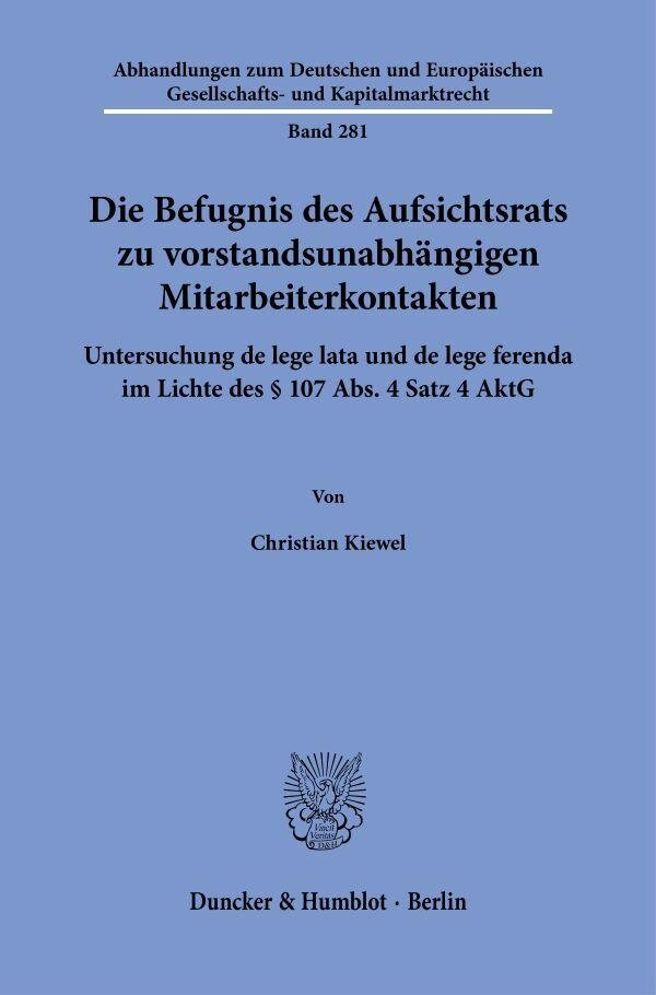 Die Befugnis des Aufsichtsrats zu vorstandsunabhängigen Mitarbeiterkontakten (niemiecki)