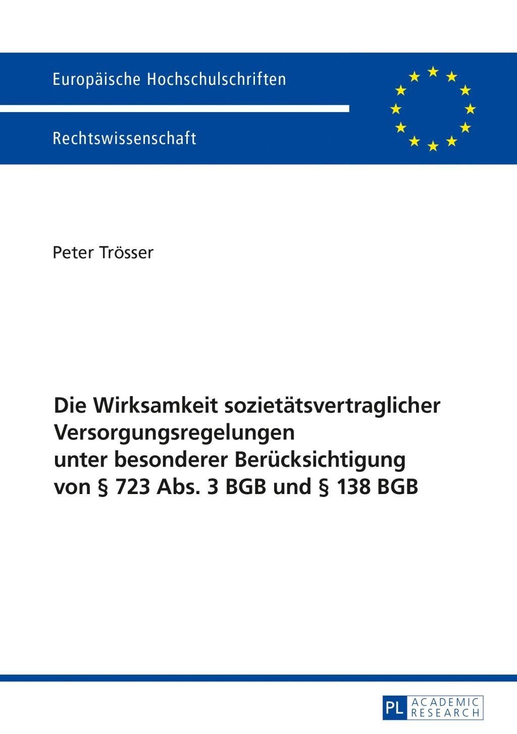 Die Wirksamkeit sozietätsvertraglicher Versorgungsregelungen unter besonderer Berücksichtigung von § 723 Abs. 3 BGB und § 138 BG (niemiecki)