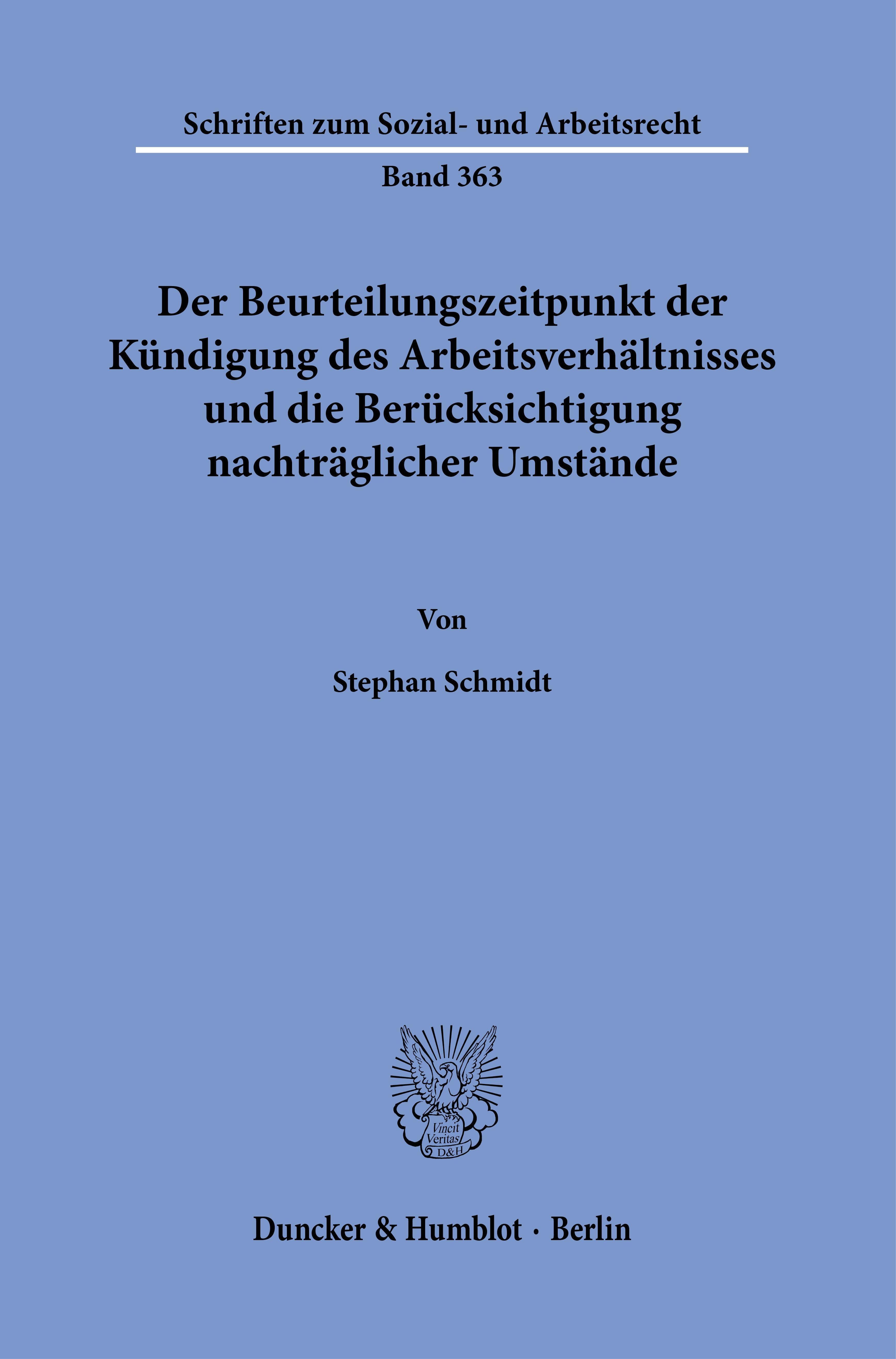 Der Beurteilungszeitpunkt der Kündigung des Arbeitsverhältnisses und die Berücksichtigung nachträglicher Umstände (niemiecki)