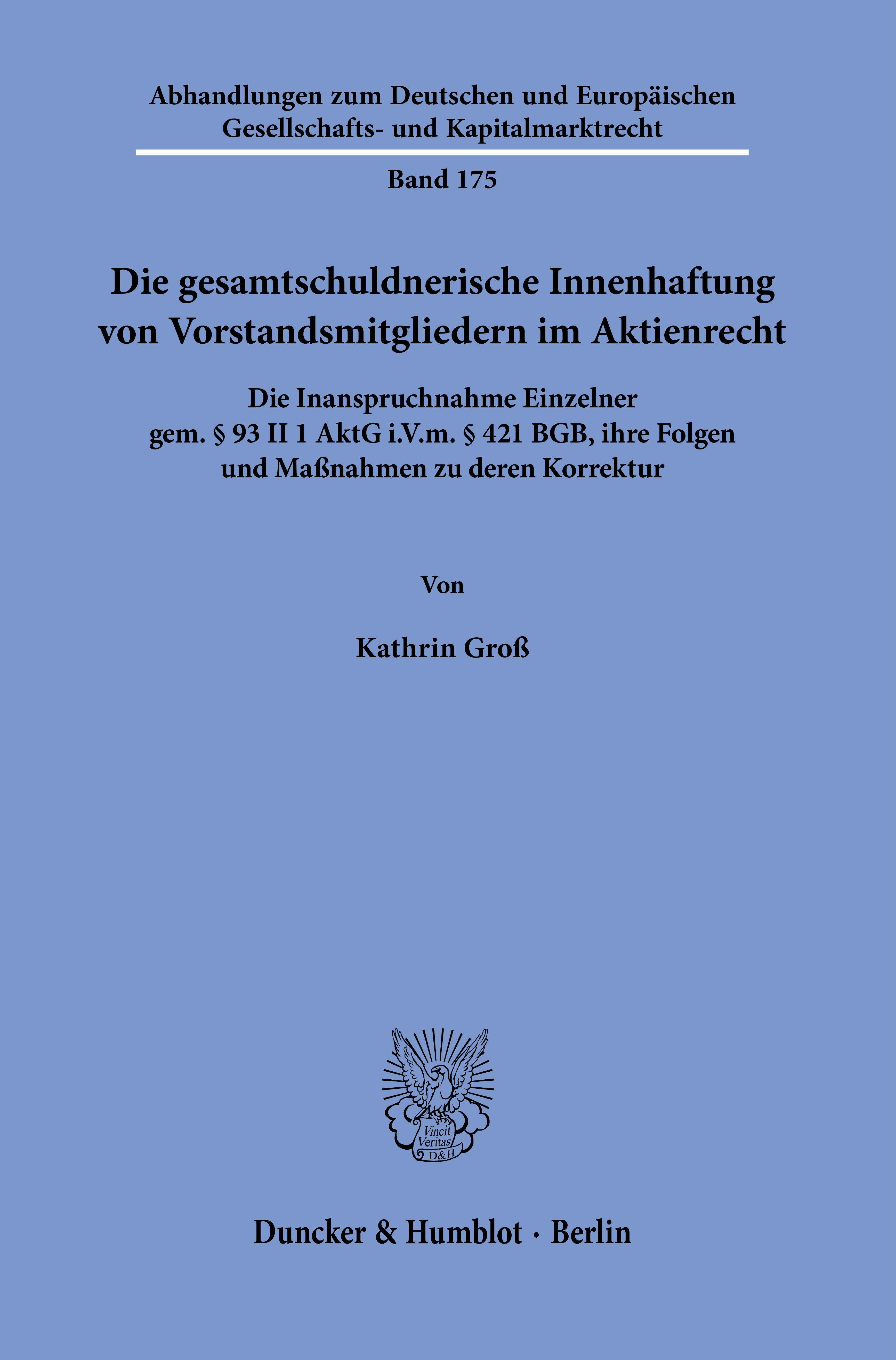 Die gesamtschuldnerische Innenhaftung von Vorstandsmitgliedern im Aktienrecht. (niemiecki)