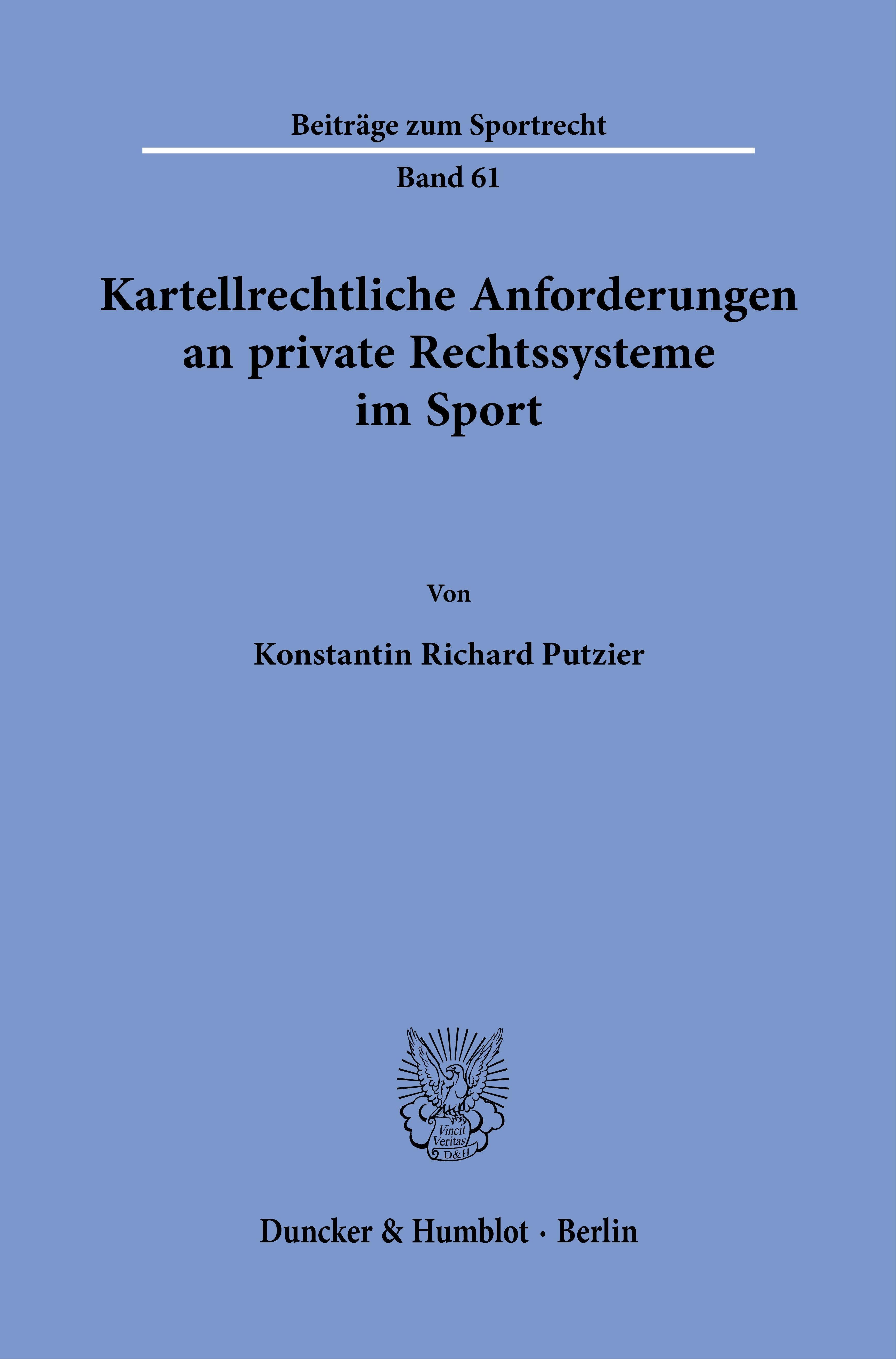 Kartellrechtliche Anforderungen an private Rechtssysteme im Sport. (niemiecki)
