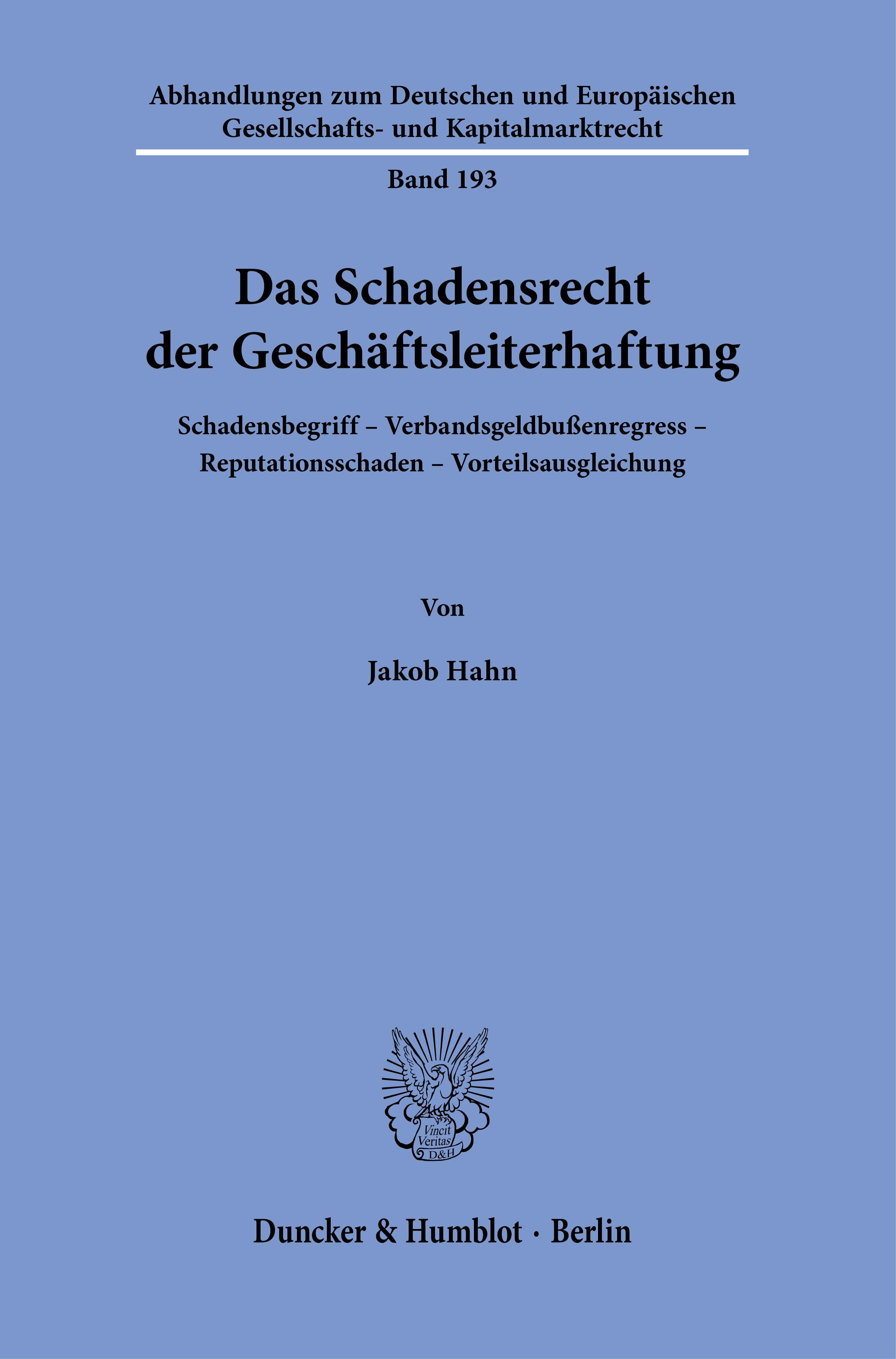 Das Schadensrecht der Geschäftsleiterhaftung. (niemiecki)