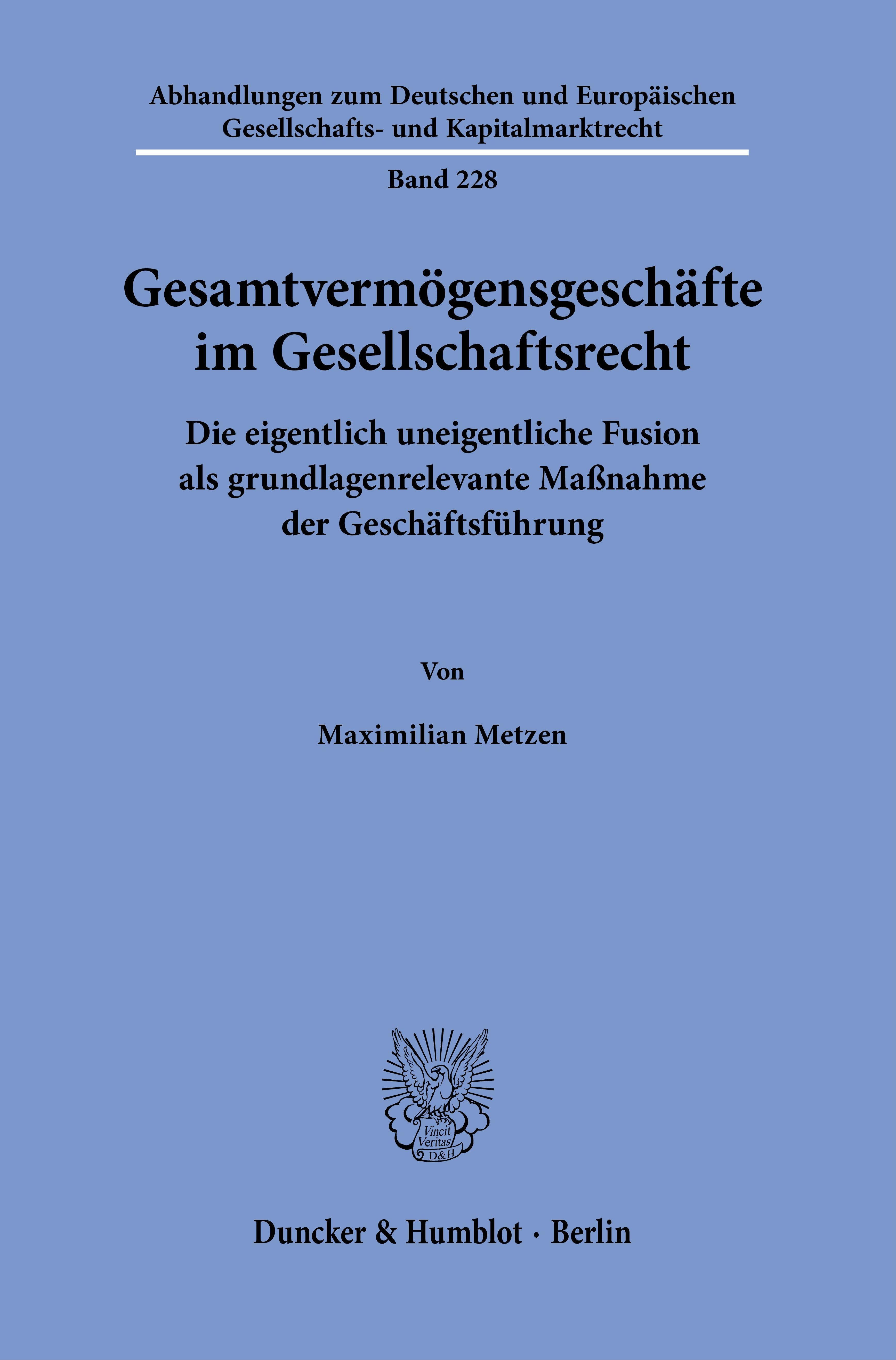 Gesamtvermögensgeschäfte im Gesellschaftsrecht. (niemiecki)