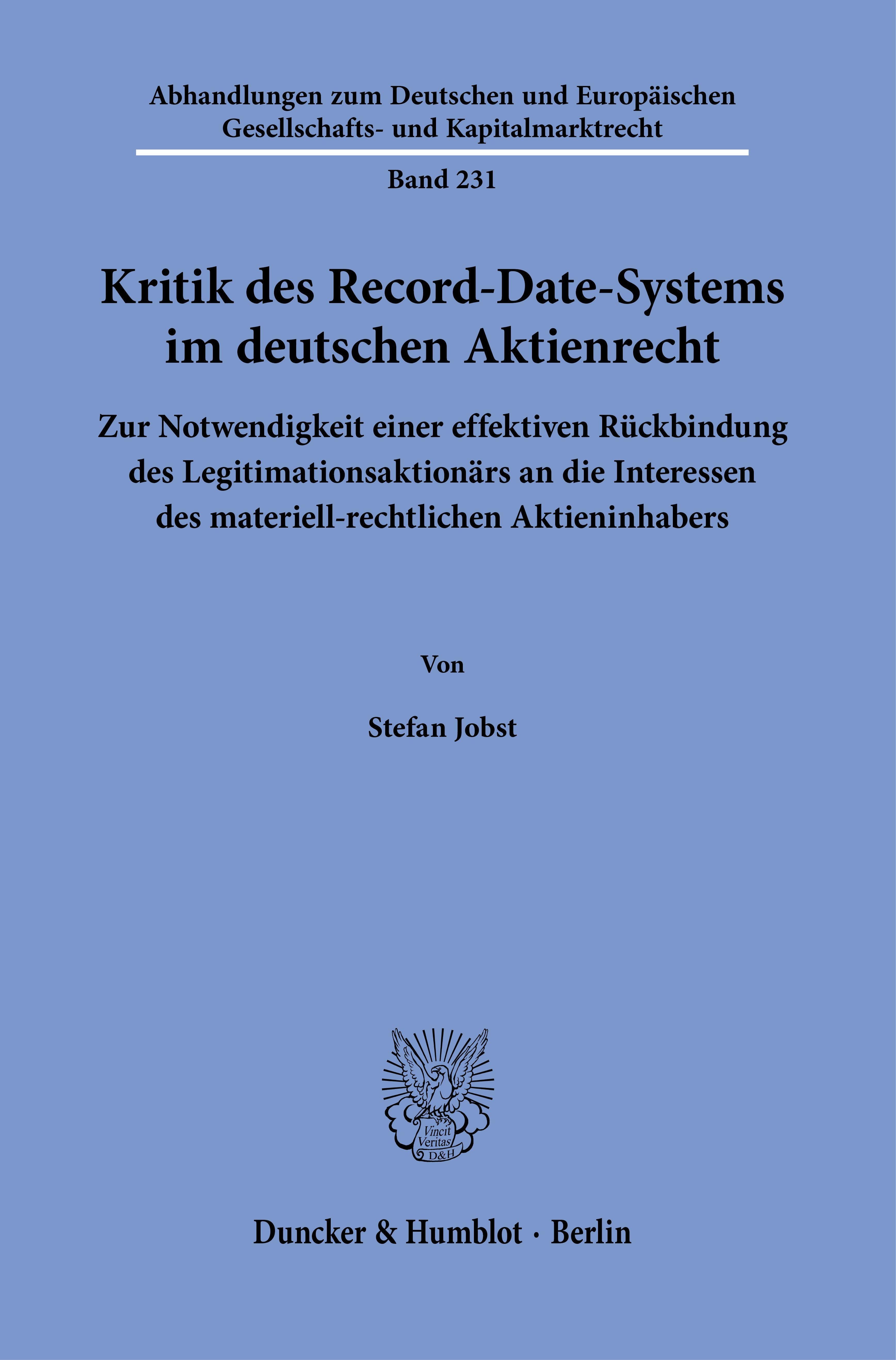 Kritik des Record-Date-Systems im deutschen Aktienrecht. (niemiecki)