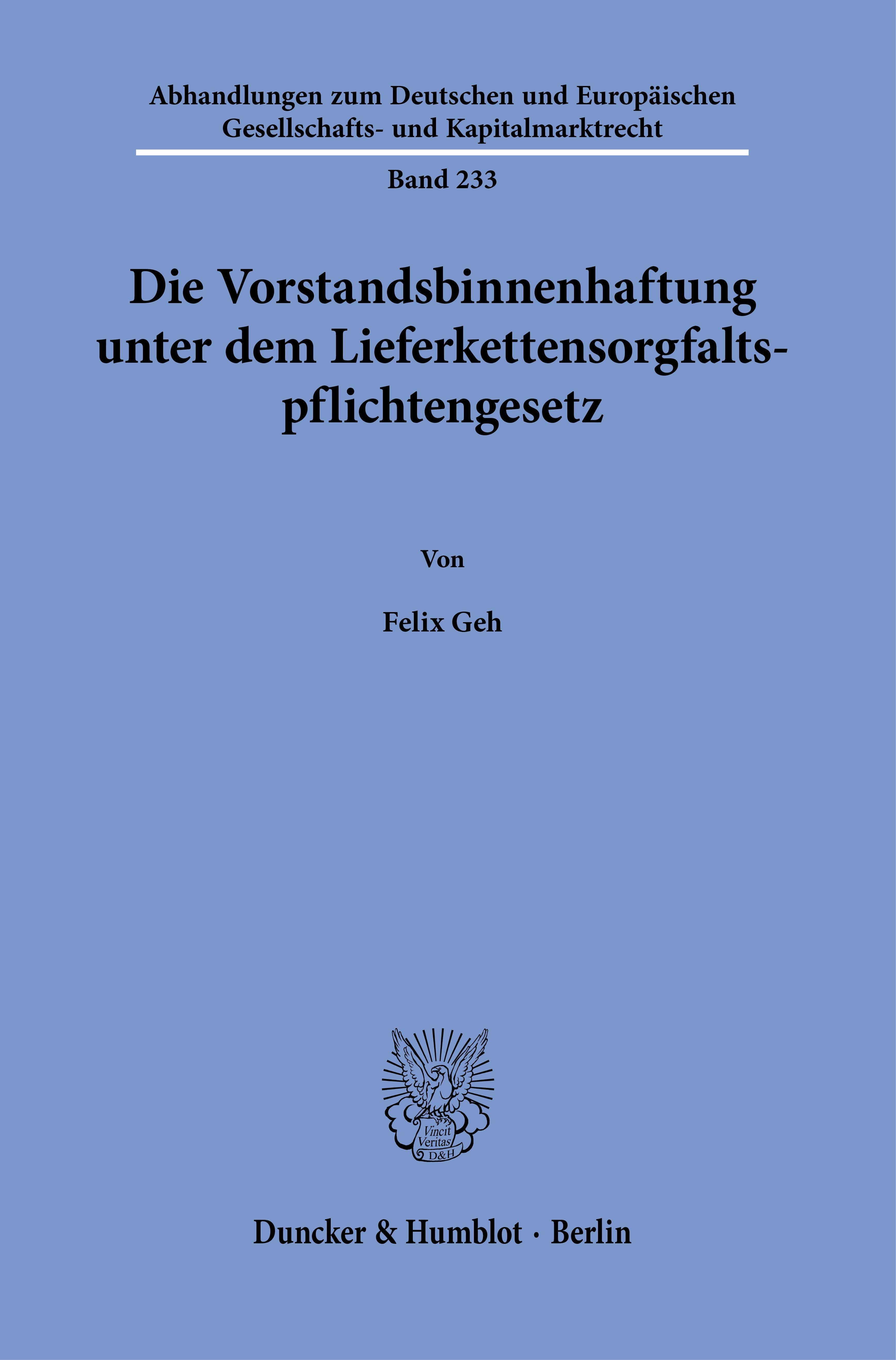 Die Vorstandsbinnenhaftung unter dem Lieferkettensorgfaltspflichtengesetz (niemiecki)