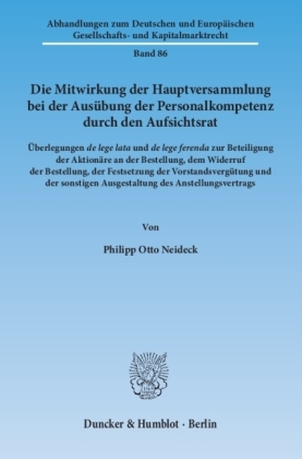 Die Mitwirkung der Hauptversammlung bei der Ausübung der Personalkompetenz durch den Aufsichtsrat (niemiecki)