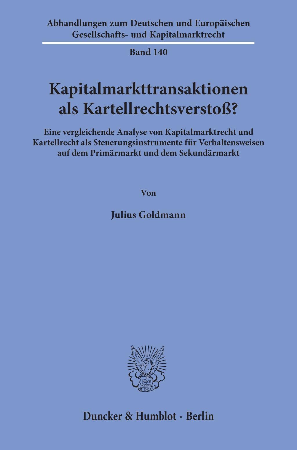 Kapitalmarkttransaktionen als Kartellrechtsverstoß? (niemiecki)