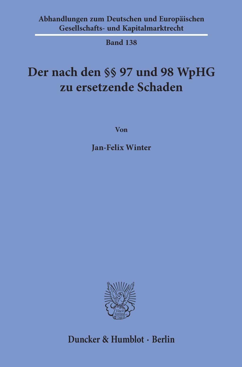 Der nach den §§ 97 und 98 WpHG zu ersetzende Schaden. (niemiecki)