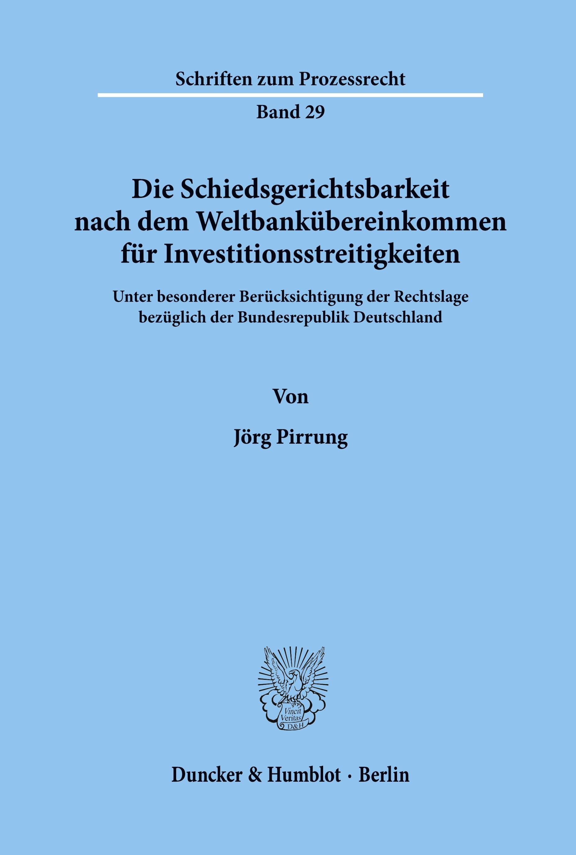 Die Schiedsgerichtsbarkeit nach dem Weltbankübereinkommen für Investitionsstreitigkeiten (niemiecki)