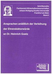 Ansprachen anlässlich der Verleihung der Ehrendoktorwürde an Herrn Dr. Heinrich Götz (niemiecki)