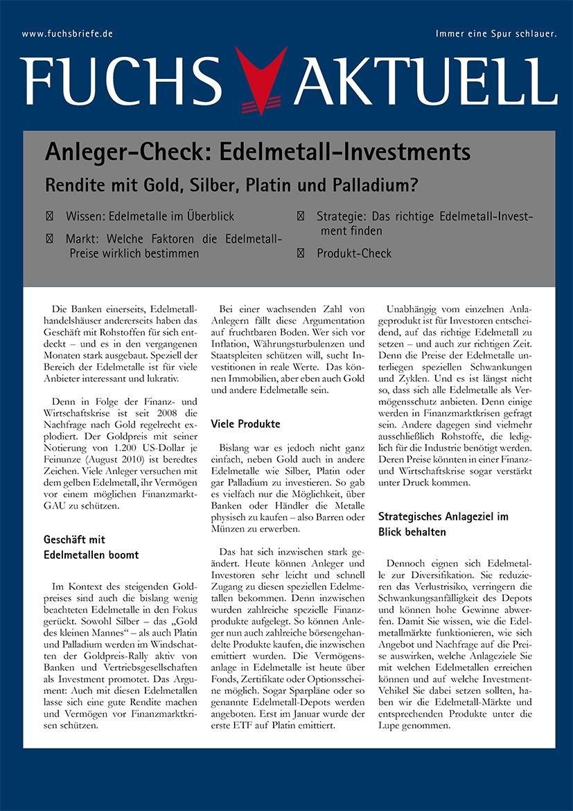 Anleger-Check Edelmetall-Investments (niemiecki)