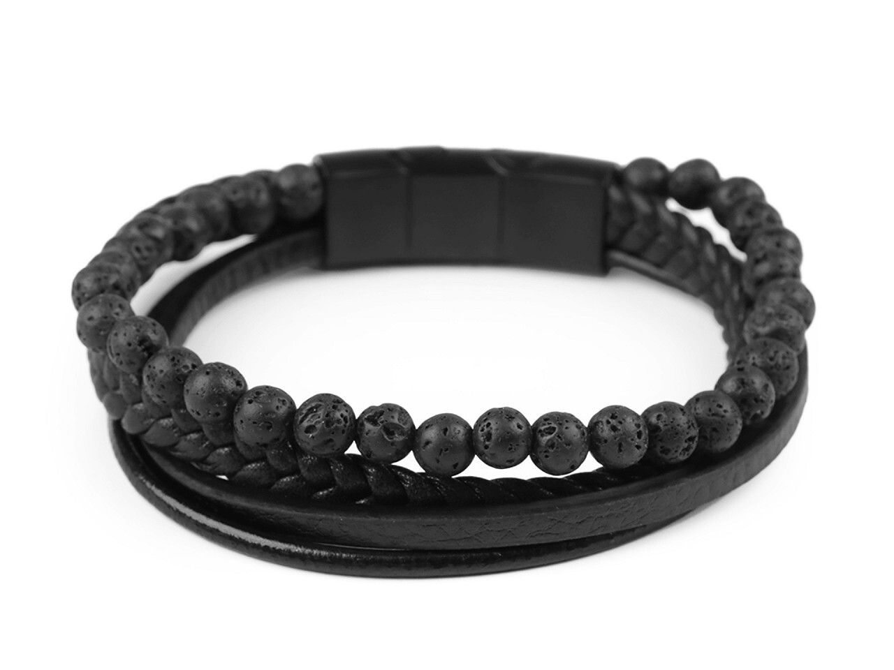 Víceřadý kožený náramek využijete k džínám a ležérnímu stylu oblékání. Zapínání s magnetem dolaďuje styl celého náramku. Má zásuvný mezidíl, díky kterému může být náramek delší nebo kratší. Hodí se pro ženy i muže - unisex.Náramek č.3 je doplněný korálky z lávy. przeczytaj całość