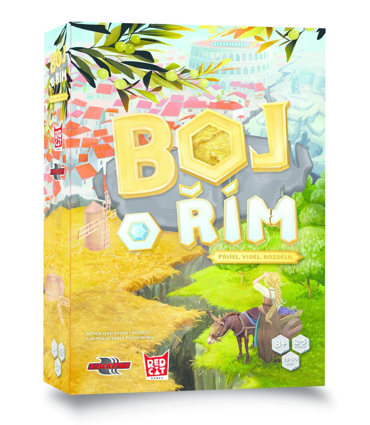 Kiedyś prosperujące Cesarstwo Rzymskie rozpada się. Nadszedł czas, aby przedstawiciele najważniejszych rzymskich rodów przywłaszczyli sobie terytoria i w ten sposób zwiększyli swoją władzę! Czy postawisz na winnice czy kamieniołomy? A może chcesz po trochu wszystkiego, do tego jakiś gaj oliwny i tłocznię oleju? Ty i inni członkowie rodów patrycjuszów musicie zawrzeć korzystny układ: zaoferować przeciwnikowi terytorium, które mu się spodoba, albo wesprzeć jego decyzję drogocennym klejnotem... Upewnij się jednak, że ostatecznie to ty zyskasz najwięcej! Dziel i wymieniaj terytoria, przejrzyj przeciwników i handluj sprytnie! Z części Rzymu stwórz prosperującą prowincję i osiągnij szczyt swej sławy! Walka o Rzym to przystępna gra strategiczna oparta na oryginalnej mechanice „dziel i wybieraj”, która skradnie serca ambitnych patrycjuszy w każdym wieku. Celem gry Walka o Rzym jest zbudowanie prowincji z części rzymskiego imperium, którymi dzielisz się z innymi graczami. W każdej turze wysuwasz roszczenia do krajobrazów z budowlami należących do innych graczy: większy zestaw krajobrazów powiększy twoje terytorium, a mniejszy uczyni cię bogatszym, ponieważ jako bonus otrzymasz klejnot. Zdobyte krajobrazy dodaj do swojej prowincji. Na końcu gry otrzymasz punkty za każdą budowlę stojącą na/obok płytki krajobrazu tego samego typu - tyle punktów, ile płytek tego krajobrazu przylega nieprzerwanie do budowli. Zawartość pudełka: 100 płytek krajobrazów 40 budowli 20 klejnotów (kryształów) 10 kart wyboru 5 kart budowli 5 dwustronnych płytek kierunku 5 parawanów 50 kart punktacji zasady w języku czeskim i słowackim