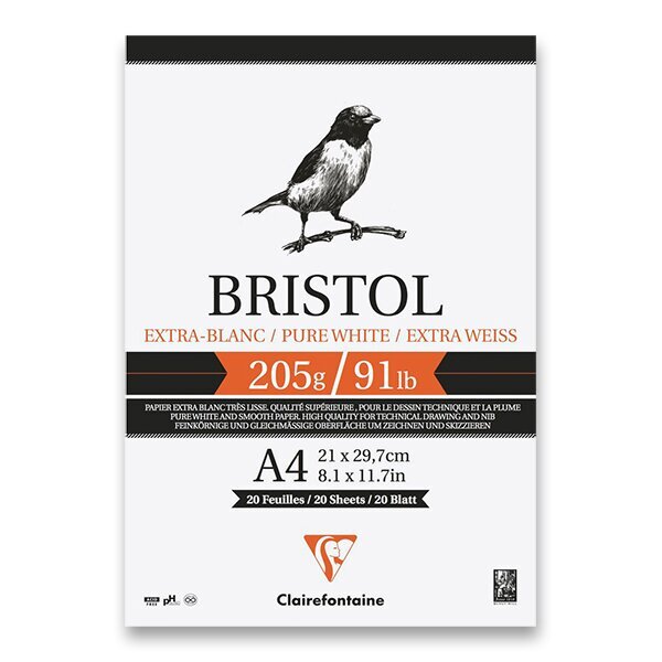 Blok Clairefontaine Bristol A4, 20 listů, 205 g
