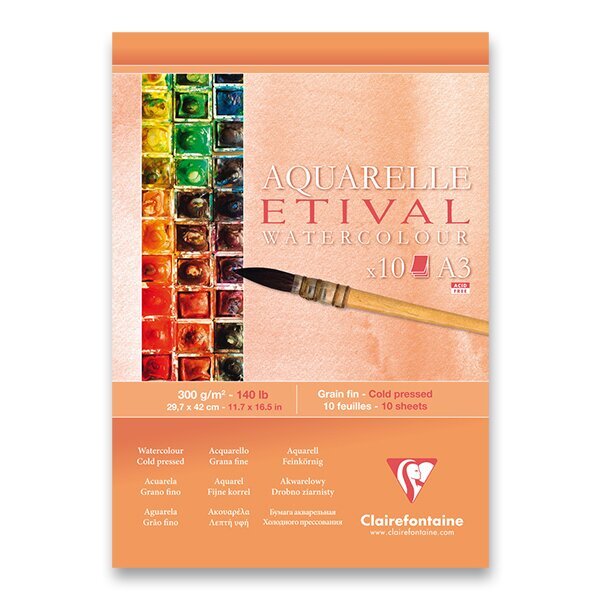 Akvarelový blok Clairefontaine Etival Study Cold Pressed A3, 10 listů, 300 g
