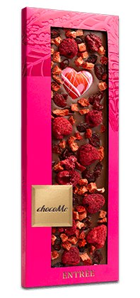 Hmotnost a velikost: 100 g čisté mléčné čokolády + posyp,( rozměry krabičky 270 x 100 x 11 mm ) Čokoláda prý dokáže v člověku vyvolat stejné pocity štěstí a euforie jako čerstvá zamilovanost. A není divu. Poctivá vrstva 40% mléčné čokolády se rozplývá jako hřejivé objetí, lyofilizované maliny, jahody a brusinky jsou sladké jako nekonečné polibky a může snad velké čokoládové srdce ...