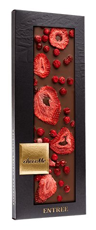 Mléčná čokoláda s plátky jahod a červeným rybízem