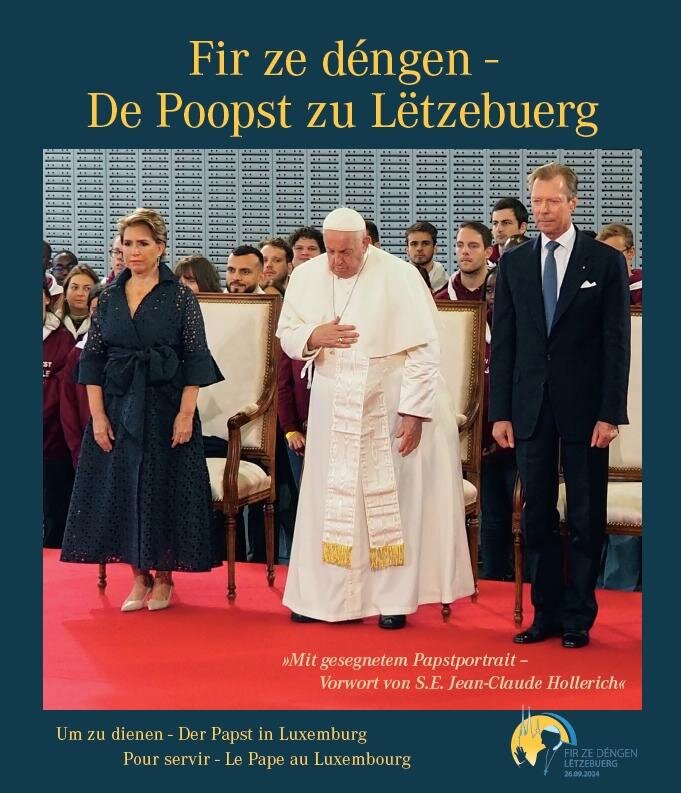 « Fir ze déngen - Um zu dienen - Pour servir », tel était la devise du Voyage apostolique du pape François, décédé le 21 avril 2025, au Grand-Duché de Luxembourg dans ses trois langues nationales : le luxembourgeois, l'allemand et le français.La documentation bilingue (allemand - français) que le...