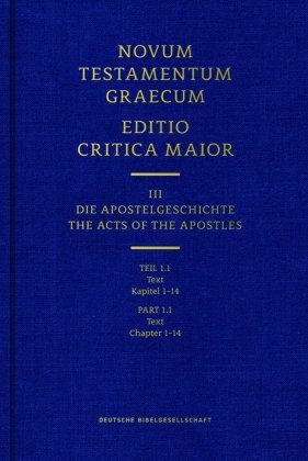 Die Editio Critica Maior dokumentiert die gesamte griechische Textgeschichte des Neuen Testaments im 1. Jahrtausend. Sie ist die Grundlage für die wissenschaftliche Forschung zum Text des Neuen Testaments. - Die vollständige Apostelgeschichte erscheint in folgenden Teilbänden: