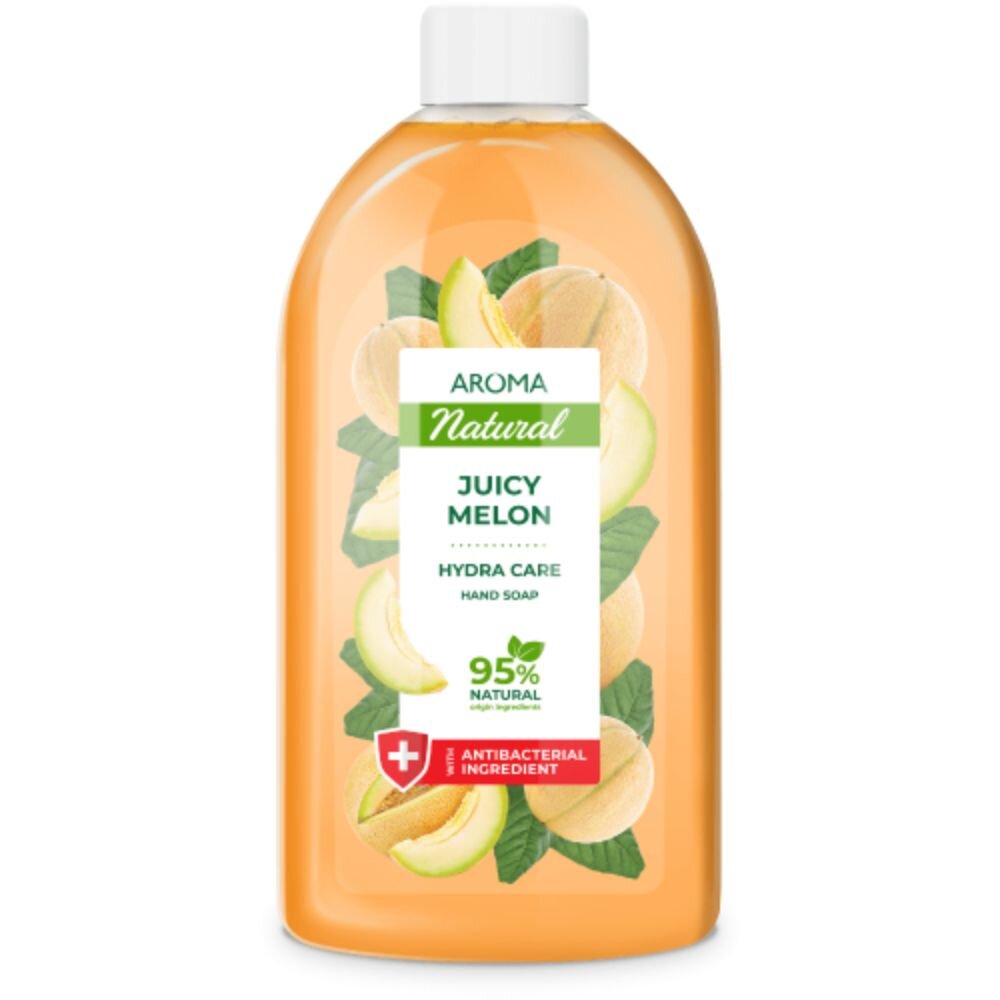 Mýdlo na ruce - šťavnatý meloun Aroma 900 mlTekuté mýdlo s antibakteriální složkou a hydratačním účinkem s vůní šťavnatého melounu. Receptura s glycerinem a kyselinou mléčnou obsahuje 95% složek přírodního původu. Jemně myje ruce a zanechává jemnou ovocnou vůni.Žlutý meloun obsahuje vitamíny a...