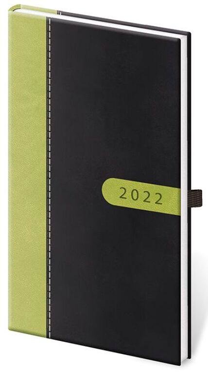 Diář 2022 Bora - černo/zelený, týdenní kapesní