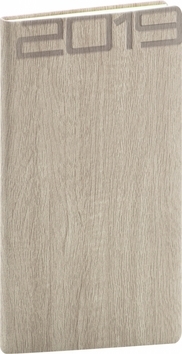 Kapesní diář Forest 2019 v krémové barvě. Diář má měkký povrch tvořený imitací dřeva, který je příjemný na dotek a snadno se do něj razí firemní logo.