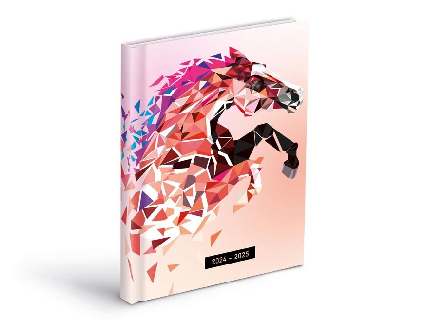 Studentský týdenní diář 2024/2025 ve formátu A6, určený především pro studenty. Motiv na přední straně diáře zobrazuje koně, který je tvořen různobarevnými trojúhelníky. Vybavte své děti tímto praktickým a stylovým diářem, který jim pomůže lépe se orientovat v jejich povinnostech a volném čase....