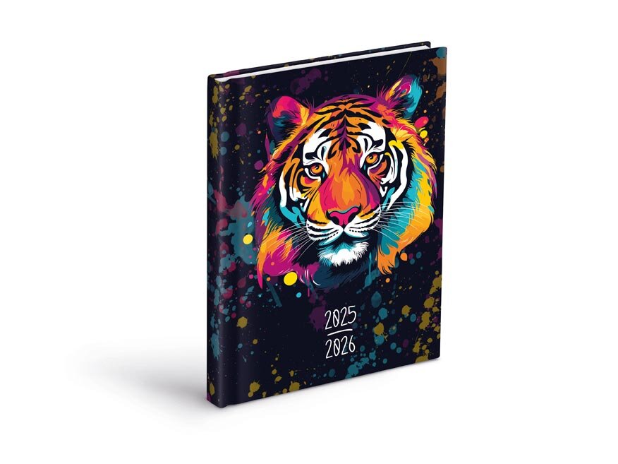 Energie, styl a prostor pro všechny vaše plány!Tento studentský diář ve formátu A6 vám bude dělat parťáka od začátku roku 2025 až do konce 2026. Výrazný design s tygrem v neonových barvách z něj dělá nepřehlédnutelný kousek, který kombinuje divokost i sebevědomí – přesně to, co potřebujete ke...